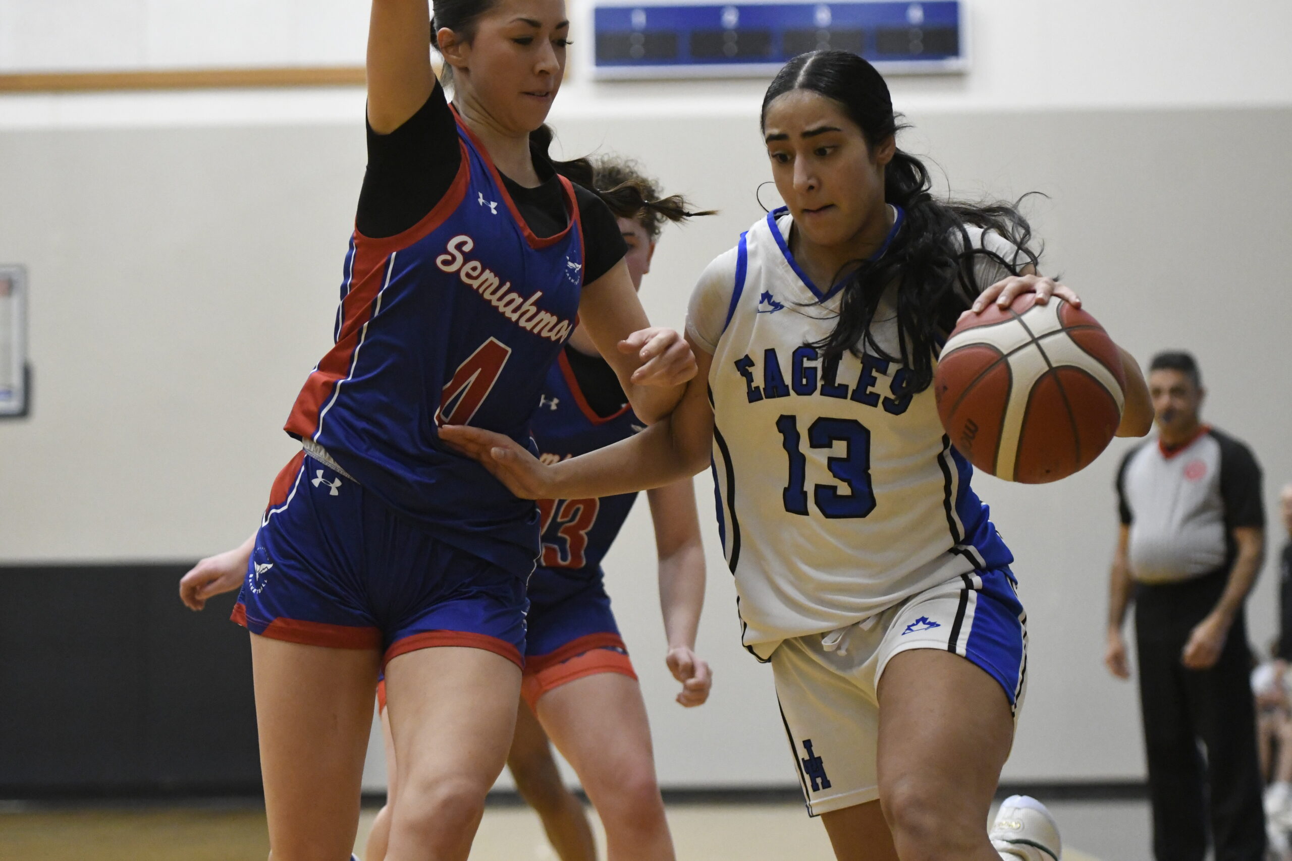 Eventually, the duel became a war of attrition as Deol picked up her fifth and disqualifying foul on a Claypool drive. The Grade 10 guard headed to the bench, lip quivering, and who could blame her? Semi stretched its lead to 62-52 after the Claypool free throws.