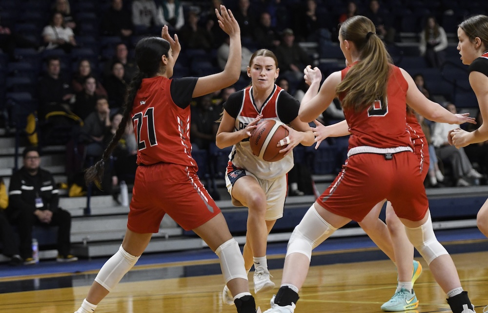 They did an effective job of containing Pitt Meadows star guard Jocelyn Boyes, who had to fight off double-teams for much of the game to try and create a shot. Attempts by Pitt Meadows to get to the basket were repelled by six-foot-four St. Michaels centre Mikaela Dubé.