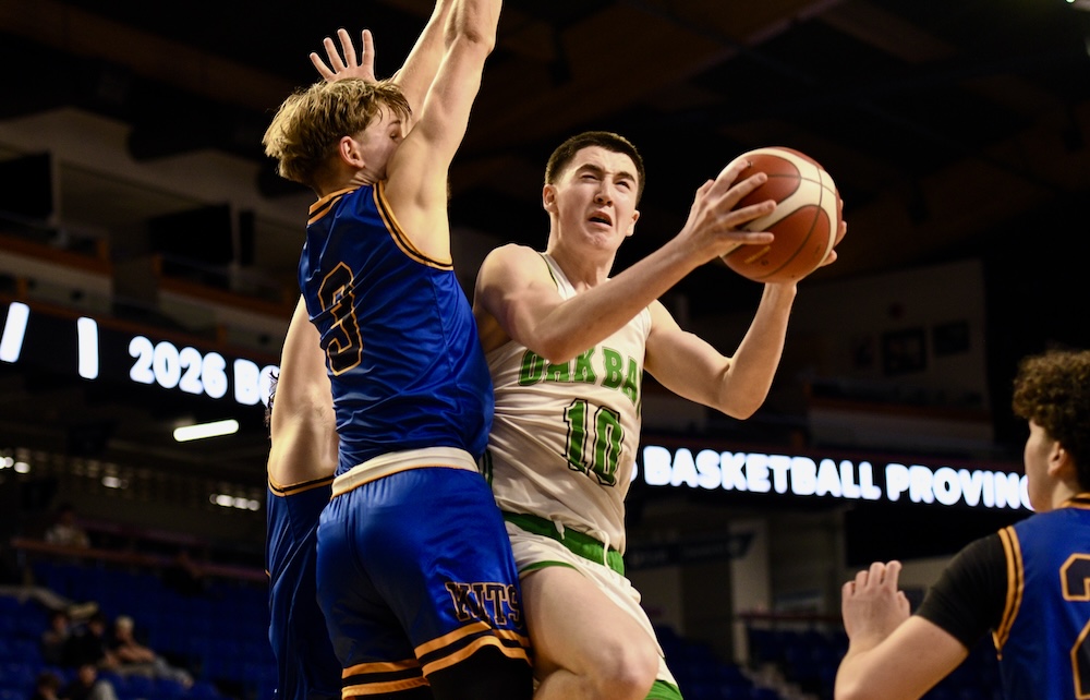 The largest lead for either team in the second half was five points, and it stayed super-snug throughout the fourth quarter. Oak Bay led 78-76 in the dying seconds of regulation, only for Nielson to come through with a spectacular drive to the rim to knot the score with six seconds left. Wiwcharuk-Burr had a chance to end it at the buzzer, spinning his way to the bucket and hoisting a short fadeaway under duress, but the ball clanged out as Oak Bay appealed unsuccessfully for a foul. Off to overtime we went.