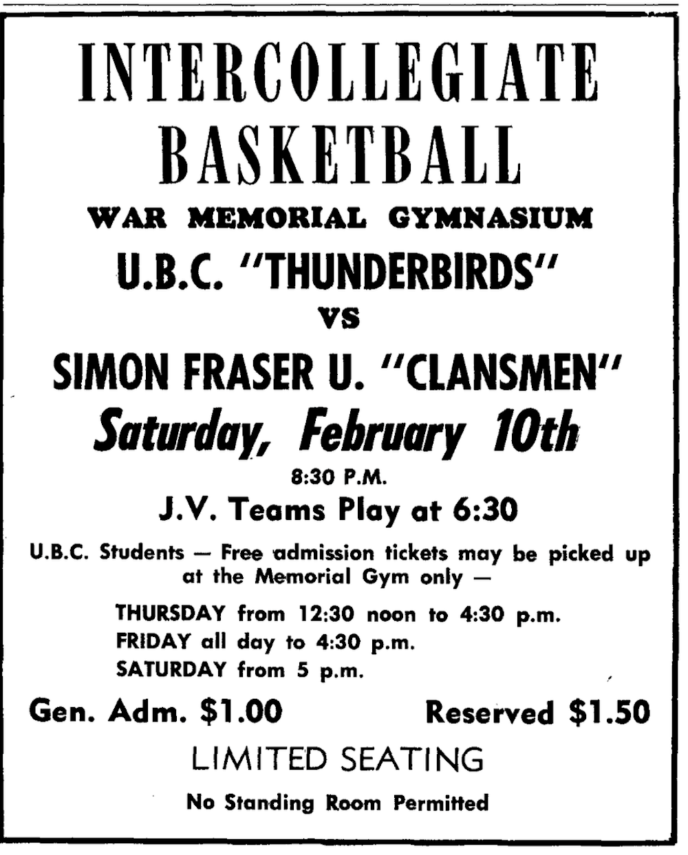 Simon Fraser topped UBC 65-51 in that first-ever game, played in the sparkling new West Gym.