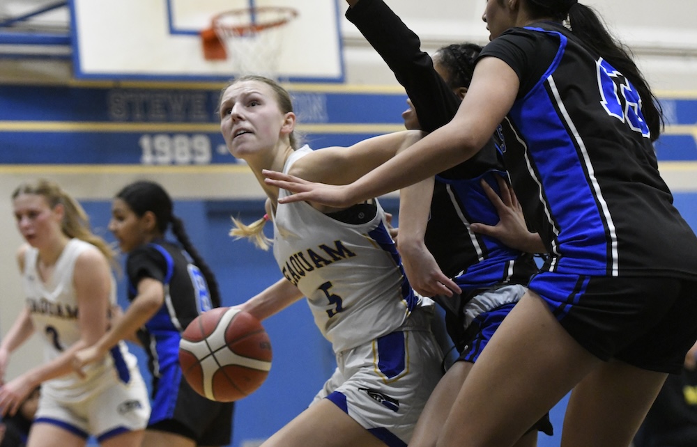 And on the other side, a Seaquam team which has played all but the first four games of the current season without the services of its senior and reigning B.C Quad-A MVP Camryn Tait due to injury, has had no choice but to carry on, developing a new identity led by returning senior guards and next-level stalwarts Callie Brost and Syra Toor.