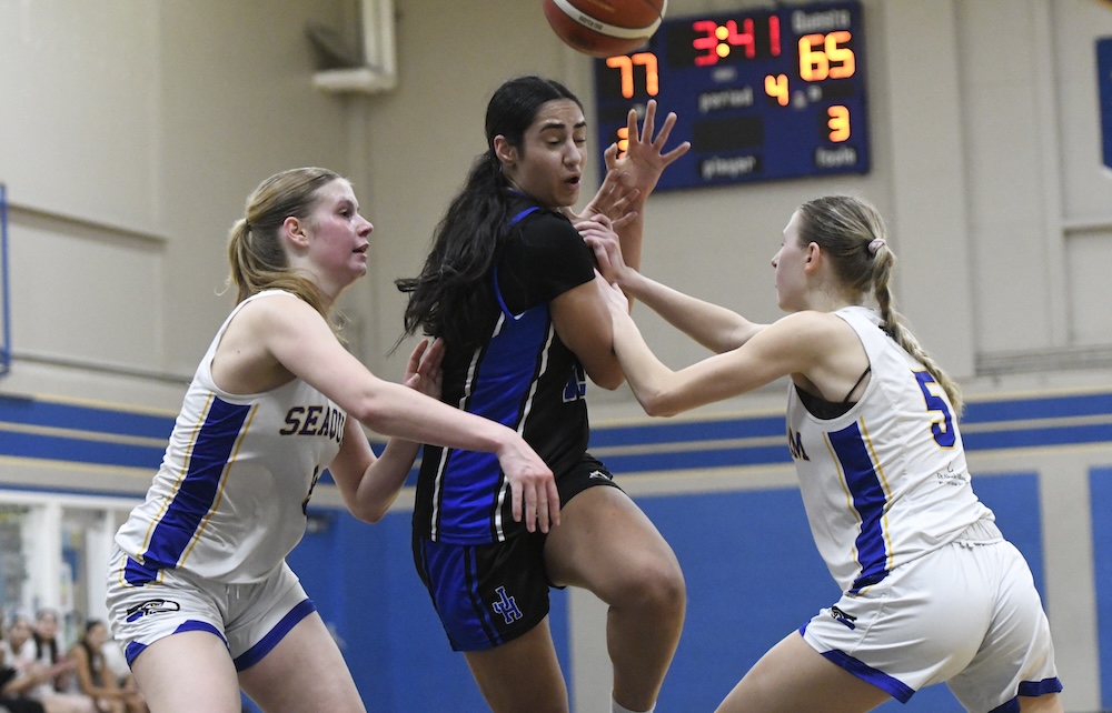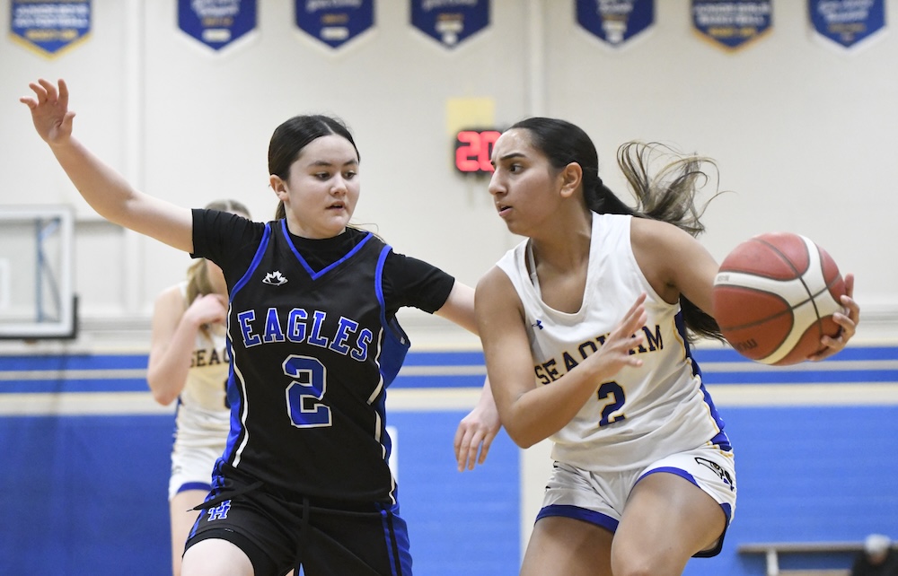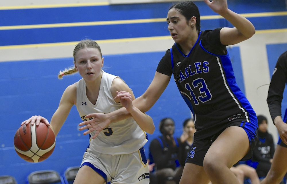 That was the reaction of your author after witnessing the host Seaquam Seahawks defeat the visiting Johnston Heights Eagles 84-77 in a regular-season ending South Fraser Quad-A senior girls basketball game in the heart of North Delta’s Sunshine Hill’s neighbourhood on Wednesday night.