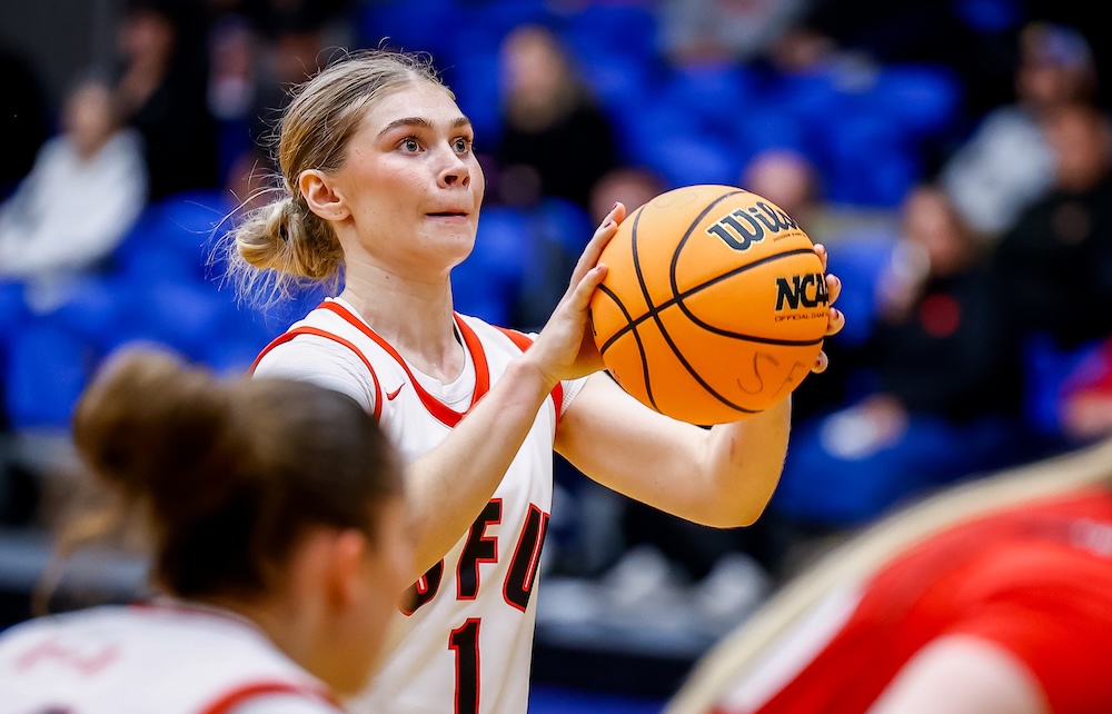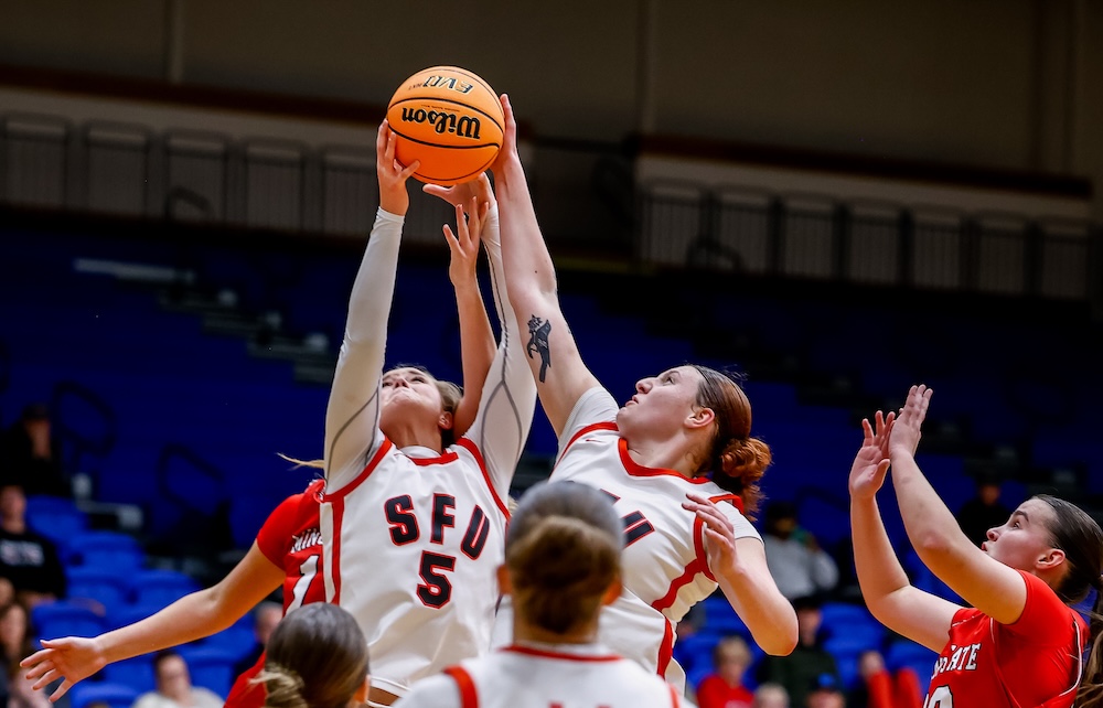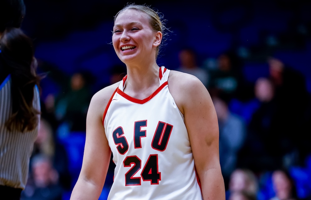 “I love the mindset we have on this team, and I look around at every player and every player wants it, and that makes me really happy,” she added, as SFU rallied from losses the previous two nights to Wisconsin-Parkside (61-50) and No. 21-ranked Colorado Mesa (61-54). “And I love that everyone’s just equally contributing in different ways. It makes it really fun. You saw it out there. It’s just so exciting and fun to play that way, and you can tell that everybody really wants it and gets after it.”