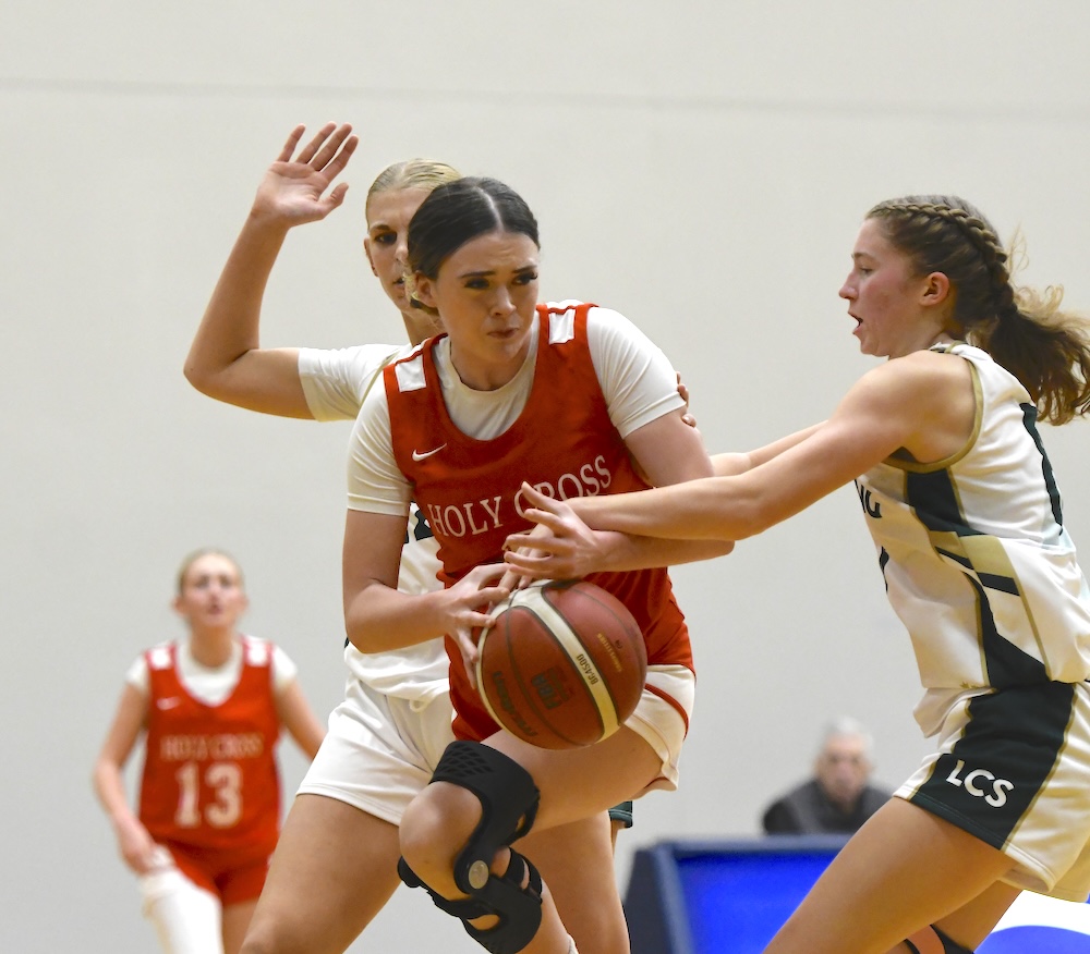 “We’re really lucky to have length because we don’t typically have length,” said Holy Cross head coach Amy Beauchamp, whose team will play in Friday’s Final Four against Thursday’s Argyle-Charles Best quarterfinal. “And our bigs are just so tall and lanky that we guard… they can guard bigs and they can guard smalls, and they block a lot of shots. And the way we can move our guards around, if one gets into foul trouble then we basically have the same guard coming in.”