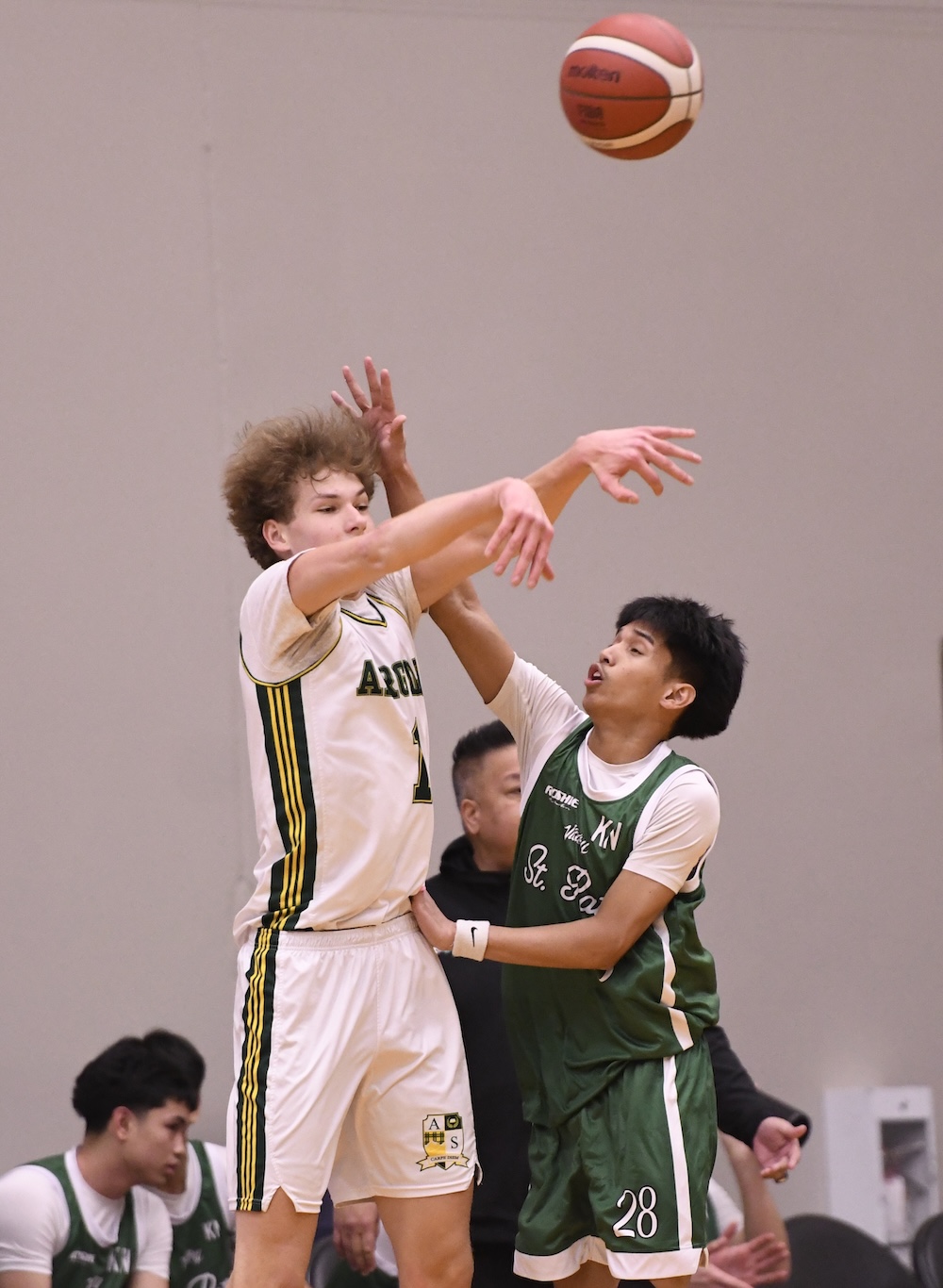 Instead, with his senior-laden squad getting back to its true man-to-man identity, Triple-A No. 2 MEI won an absolute squeaker, getting huge plays down the stretch drive from a somewhat unheralded Grade 12 named Gabe Headley to beat Quad-A No. 5 Vancouver College 66-64, earning a spot in Friday’s TBI Final Four against the Triple-A No. 1 St. Patrick’s Celtics.