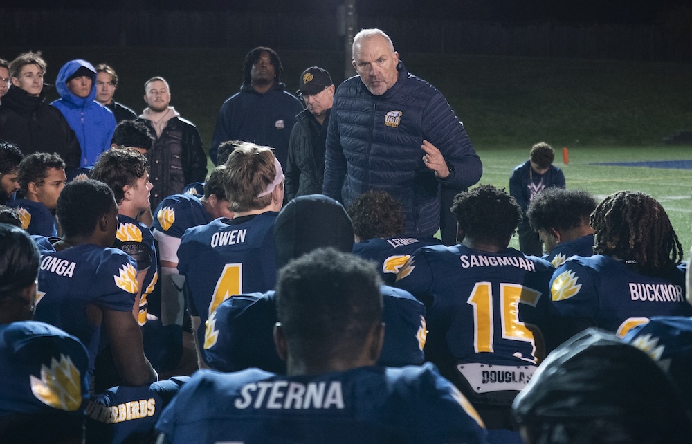 UBC’s lone major came on a 32-yard strike from quarterback Drew Viotto to receiver Trey Montour with 3:25 remaining and was the only score of the second half… The ‘Birds biggest positive on offence emerged from the backfield where third-year running back Riley Michaud, a 5-foot-10, 190-pound bruiser out of Calgary-Ernest Manning, consistently found ways to keep his legs pumping as he pushed through the best gang-tackling efforts of the Huskies. Michaud finished 15 carries for 88 yards as he worked behind an offensive line which started 6-foot-5, 290-pound Toronto native and freshman Wolf Colavecchia at centre in place of the unit’s fifth-year senior leader, the injured Gavin Coakes… To offer some idea of how prolific you can expect the freshman quarterback Viotto to become in future years, consider this fact: On Friday, he was effective yet never truly in an extended passing rhythm but still went 21-of-33 for 306 yards with a touchdown and a pick. All of this coming off a 26-of-42 passing afternoon for 473 yards and three touchdowns in a 35-31 loss to Manitoba, one which stands as the third highest all-time single-game passing mark in program history. That’s 779 yards passing in his last two games.